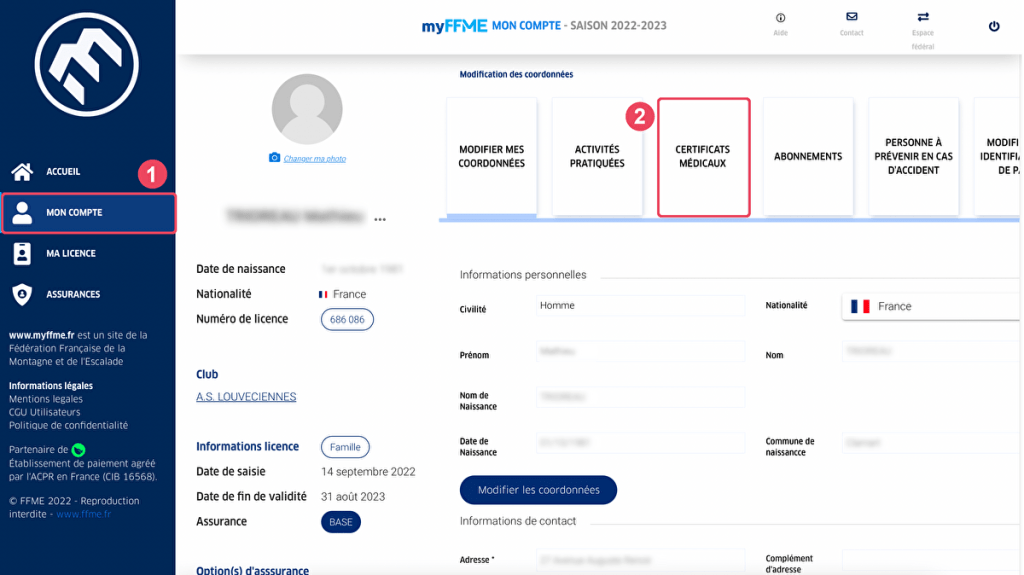 Voici les étapes à suivre pour mettre à jour vos informations sur myFFME :