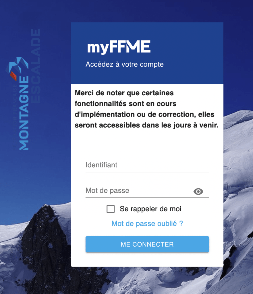 A noter : l’identifiant myFFME est différent de celui que vous aviez précédemment sur l’intranet. Ce nouvel identifiant vous a été communiqué dans un email d’activation de votre compte myFFME.